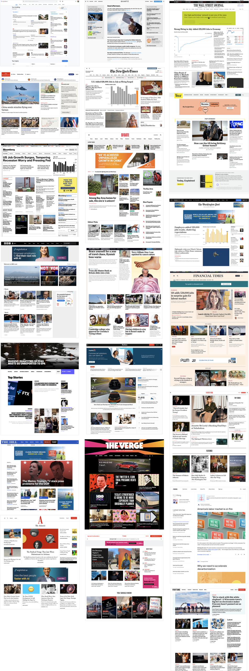 Typographie Stratégique : Utilisation de polices Serif pour l’autorité des titres (NYT, WaPo) et Sans-serif pour la lisibilité du corps de texte.